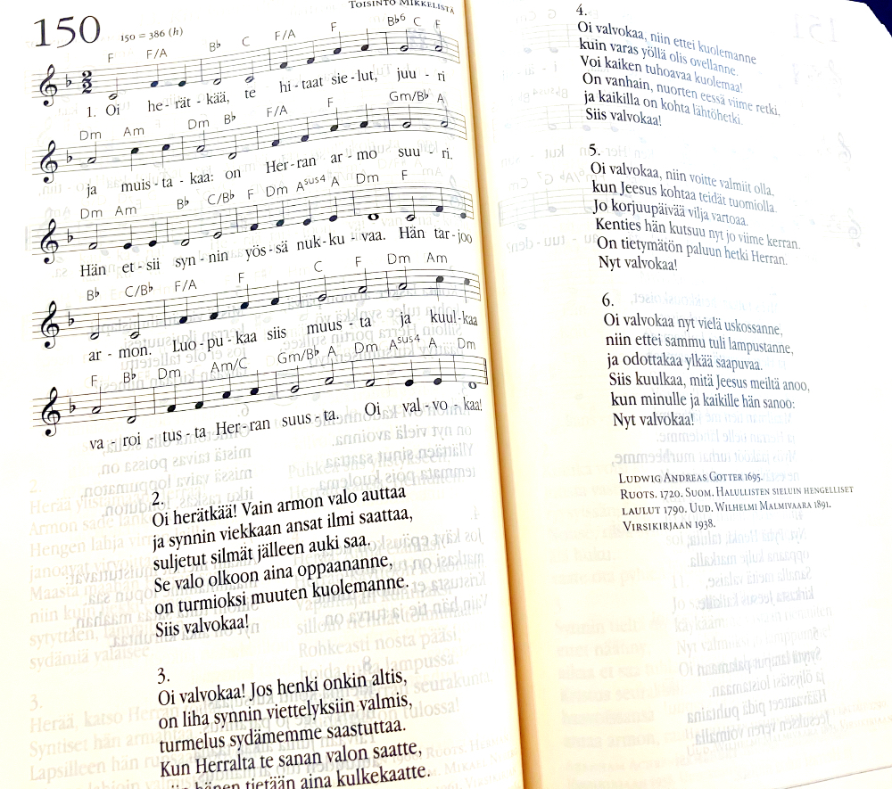 (6) Vor dem Gang an Bord noch Kirchenarchitektur besichtigt, maßvoll beeindruckt. Offenkundig sind Kirchenlieder auf Finnisch aber noch schwerer erträglich als auf Deutsch. Oi, oi, oi!